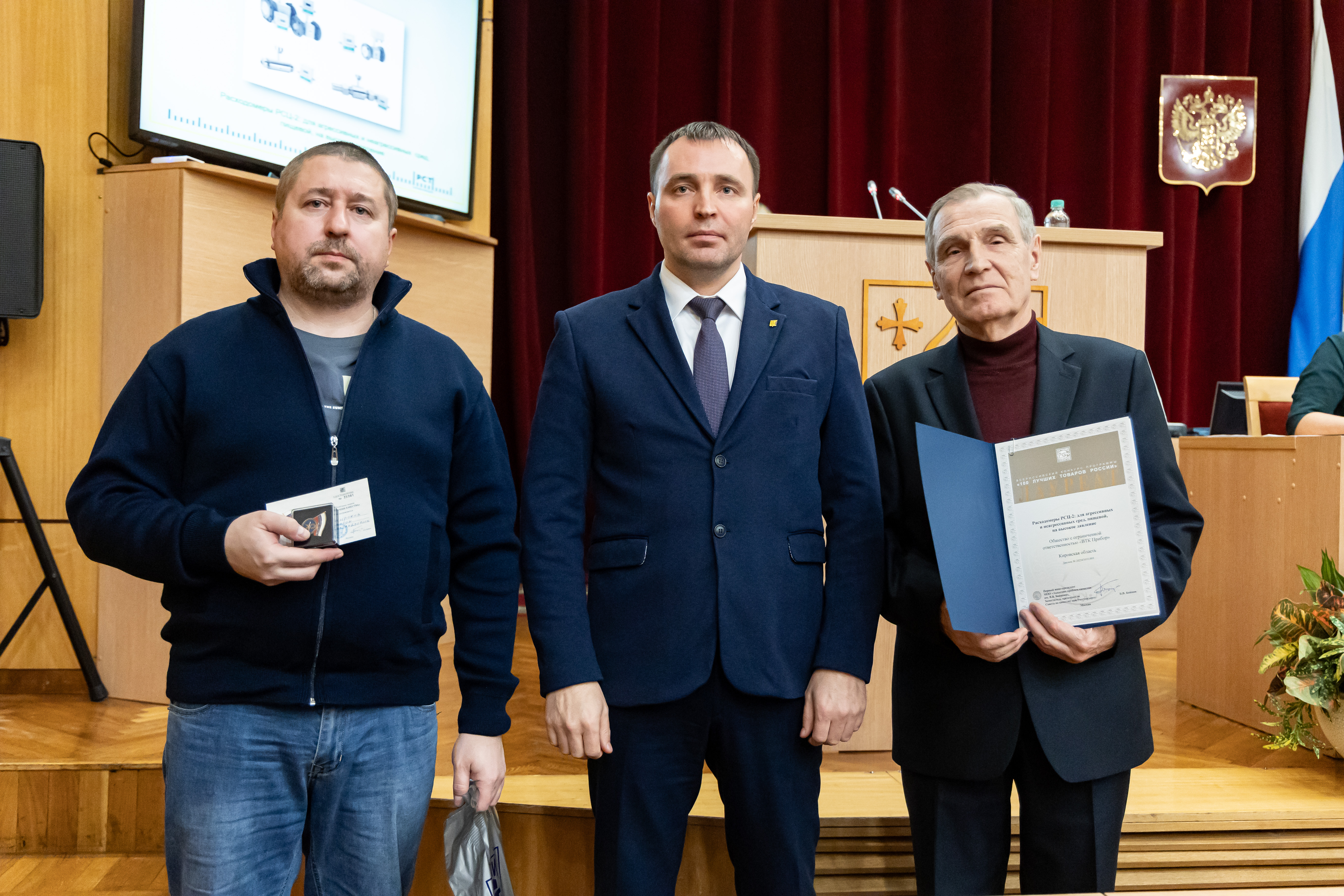В текущем году Лауреатами конкурса от Кировской области стали 13 товаров и 1 услуга. В этом ряду Лауреатов — наши расходомеры «РСЦ-2». Эта победа — результат кропотливой работы коллектива конструкторов, технологов и производственников, внедряющих современные стандарты и строгий контроль на каждом этапе. Торжественная церемония вручения диплома Лауреата прошла в Правительстве Кировской области.